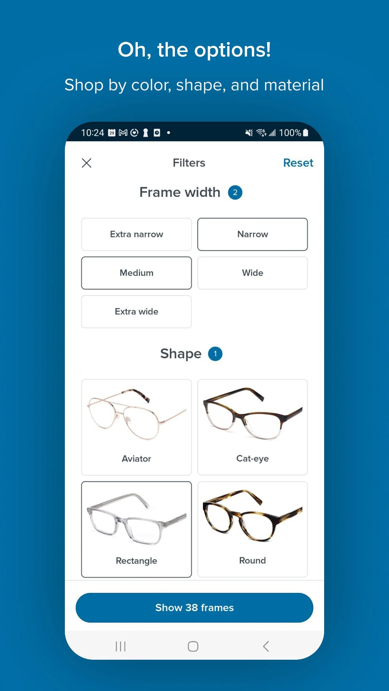 Users may prefer different frame styles, materials, shapes, and colors. The filter feature helps them shop effortlessly based on their preferences and needs.
